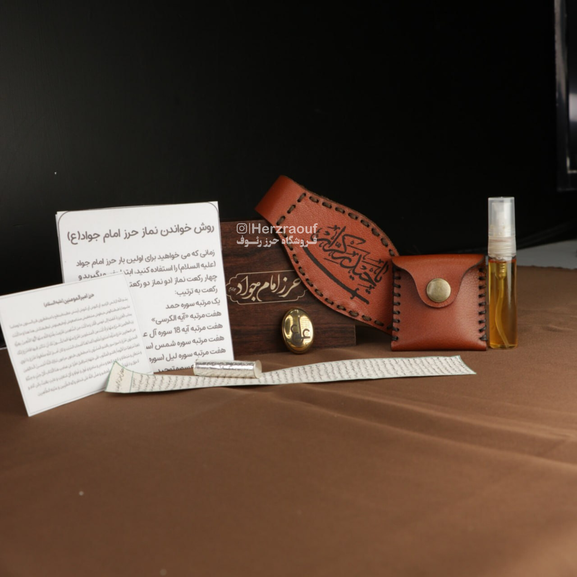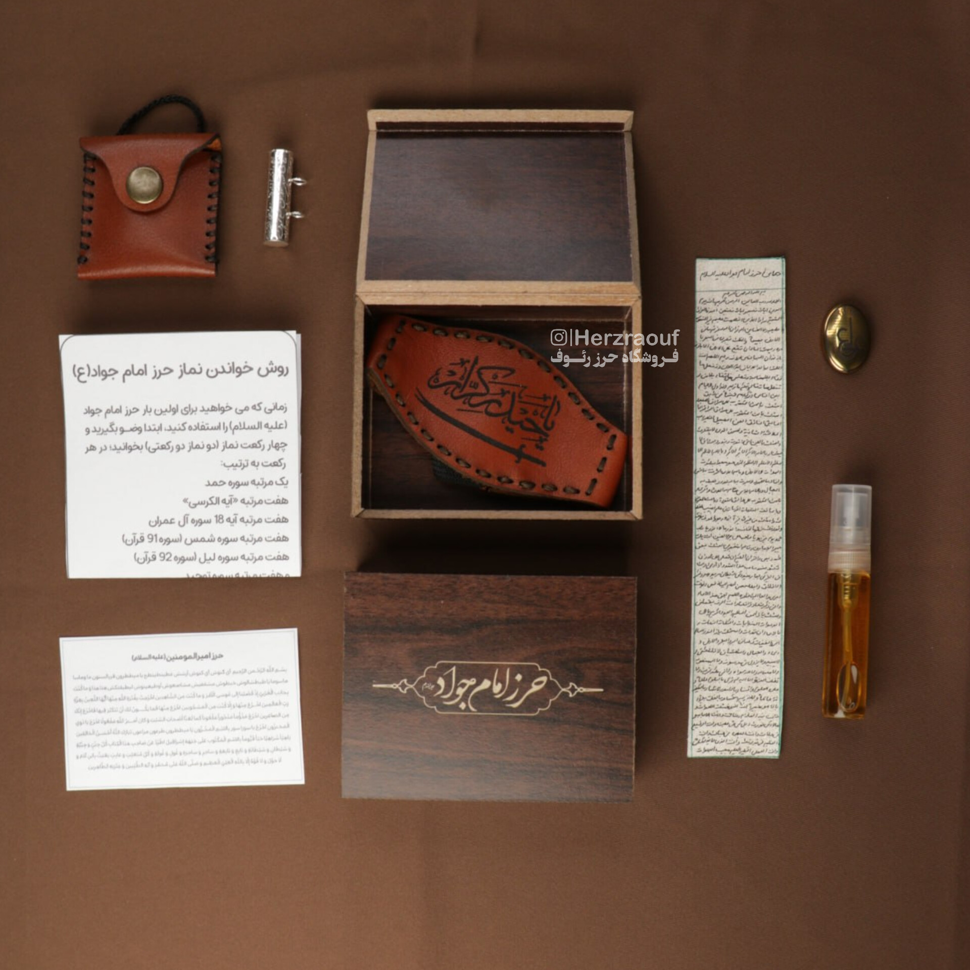 یاسر گوید: زمانیکه امام جواد (ع) صبح کرد، کسی را به دنبال من فرستاد و مرا خواند و پوست آهوی نازکی از من خواست و سپس با خط خود آن حرز معروف را نوشت و فرمود: یاسر! آنرا در بازویش ببندد. وضوی کاملی بگیرد و چهار رَکعت نماز بخواند؛ در هر رَکعت، «فاتحهُ الکتاب» و هفت مرتبه «آیهُ الکرسی»[۱] و هفت مرتبه آیه «شَهِدَ اللهُ»[۲] و هفت مرتبه «وَ الشَّمسِ» و هفت مرتبه «وَ اللّیلِ» و هفت مرتبه «قُل هُوَ اللهُ أَحَدٌ» و سپس آنرا به بازوی راستش ببندد با حول الهی و قوت او در هنگام بلایا از هر چیزی که می ترسد و دوری می کند سالم می ماند.