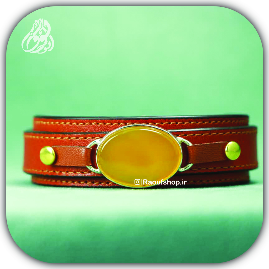 دستبند چرمی عقیق شرف الشمس کد 882(آماده حکاکی ذکر شرف)