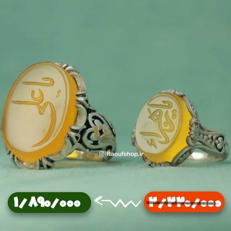 انگشتر ست زنانه مردانه با عقیق زرد با حکاکی زیبای یاعلی و یازهرا مخصوص روز ازدواج